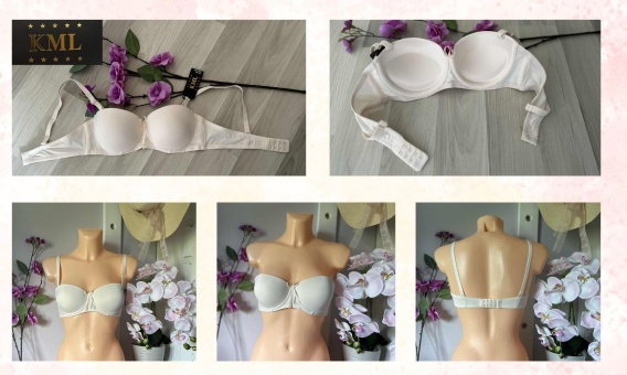 Miseczka tego modelu została zaprojektowana tak, by jednocześnie zagwarantować wsparcie dla biustu oraz podkreślić jego naturalne kształty. Gładka powierzchnia z fiszbinami oraz wyściełaniem typu push up sprawiają, że biust prezentuje się zmysłowo i kobieco. Dodatkowym elementem ozdobnym jest urocza wstążeczka z kwiatkiem – detal, który czyni biustonoszem jeszcze bardziej atrakcyjny.Obwód biustonosza wykonany jest z gładkiego, jednolitego materiału. Posiada silikon dzięki czemu bez ramiączek trzyma się bardzo stabilnie, posiada fiszbinę boczną przynosząc stabilizację i wygodę.
